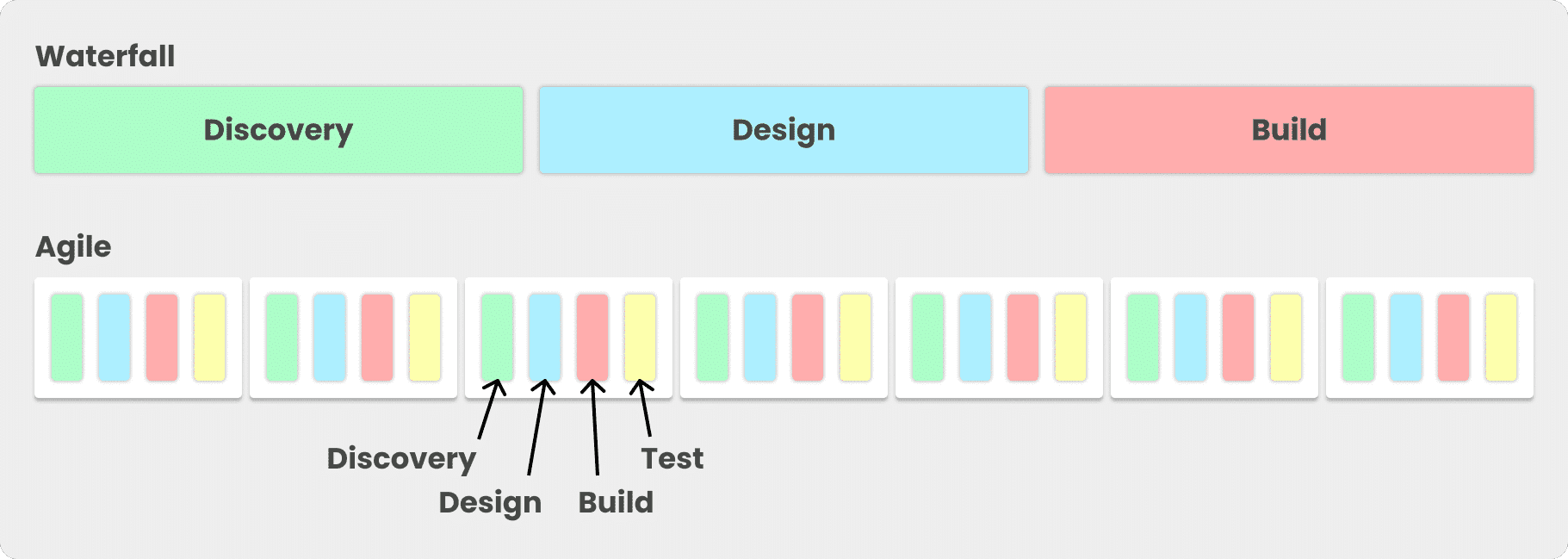 And that’s what an agile approach to product design looks like how it differs from waterfall. Naturally, there are deeper conversations and nuances to all of this—particularly how UX integrates within this flow because it’s not necessarily as clean as I’ve described it—but at a high level, waterfall tries to get things right on the first try while agile tries to get things right eventually.